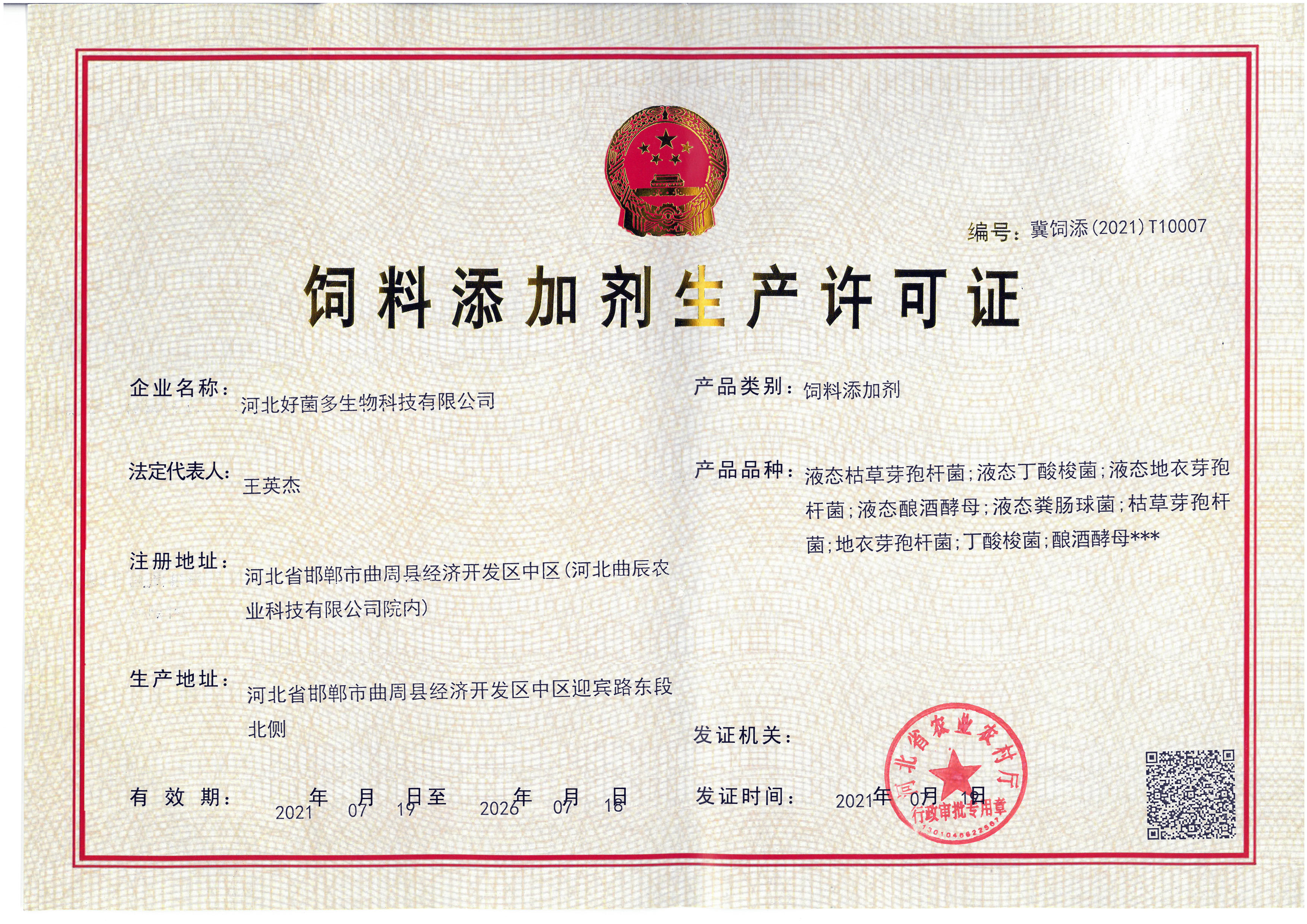 饲料添加剂生产许可证